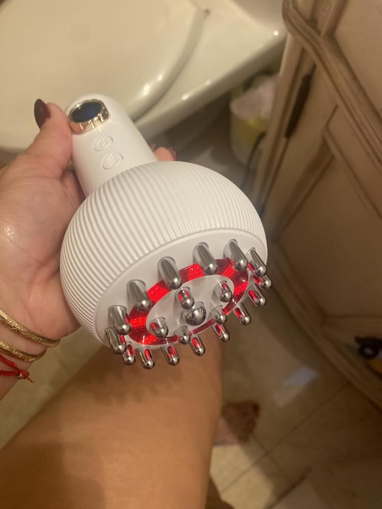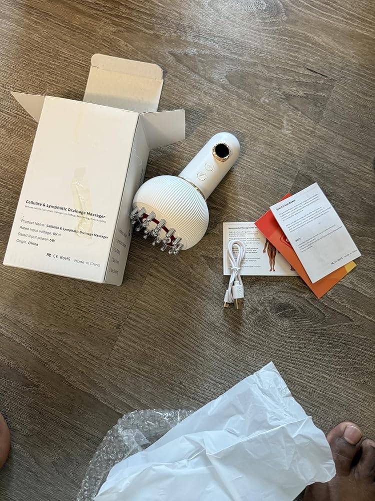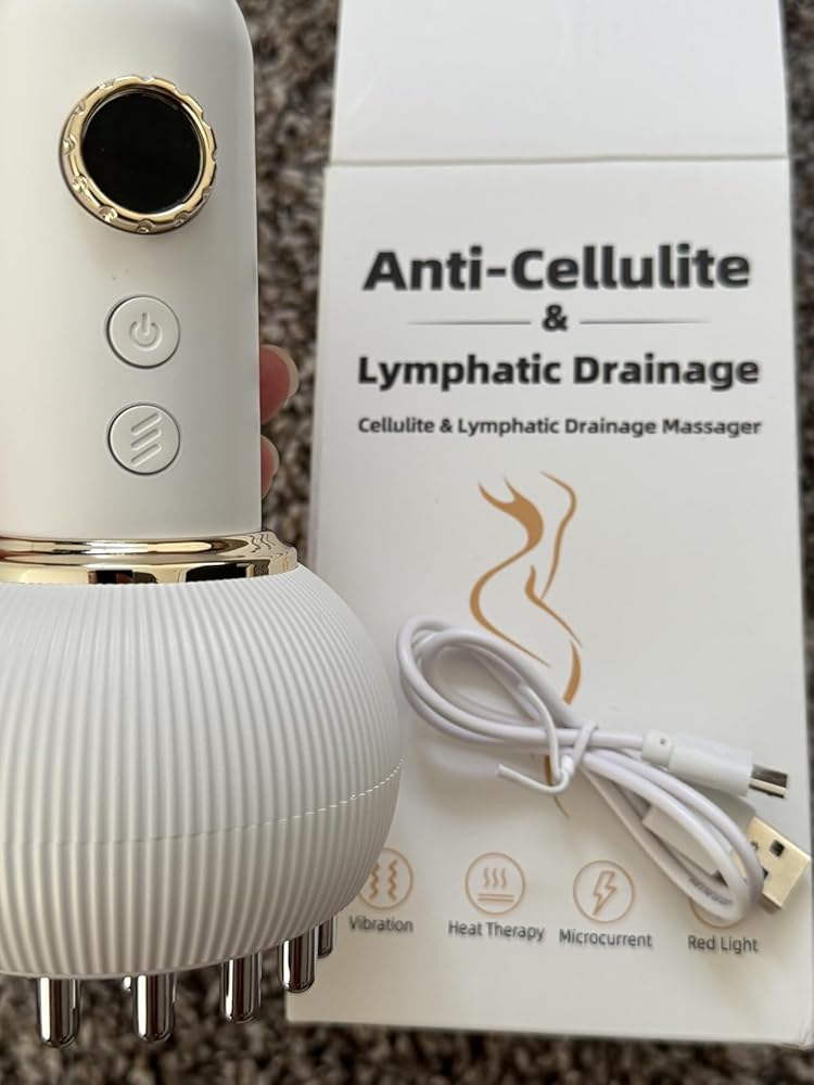 I absolutely love this lymphatic drainage massager! The design is lightweight, comfortable to hold, and the different modes allow me to adapt to what my body needs each day. The combination of microcurrent, light, heat, and vibration makes it feel like a professional at-home treatment. It's easy to use on my legs, arms, and abdomen, and I love how relaxing the heat and vibration feel while helping to improve circulation. After a few weeks, I noticed my skin looks tighter and more toned, and some of the stretch marks and cellulite have visibly reduced. Definitely a great tool for body sculpting and overall skin health!