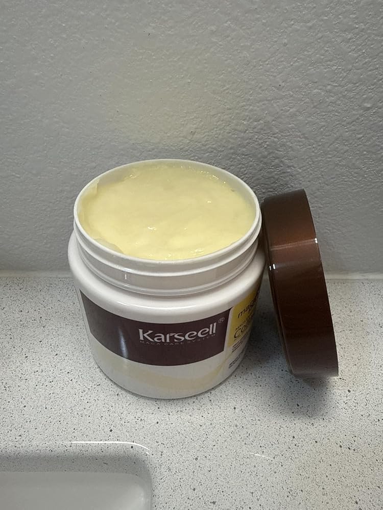 I absolutely love this hair treatment! The Karseell Collagen Hair Mask has been a game changer for my dry and damaged hair. From the first use, I noticed how soft, smooth, and manageable my hair felt. The blend of collagen, argan oil, and maca essence deeply nourishes and repairs without leaving any greasy residue.What I really appreciate is how it restores shine and makes my hair look healthier and stronger. It also has a pleasant scent that lasts after washing. I use it 2-3 times a week, and it feels like a salon-quality treatment at home.If your hair is dry, brittle, or chemically treated, this mask is a must-have. It provides deep hydration, reduces frizz, and makes detangling so much easier. I definitely recommend it to anyone who wants to revive and protect their hair!